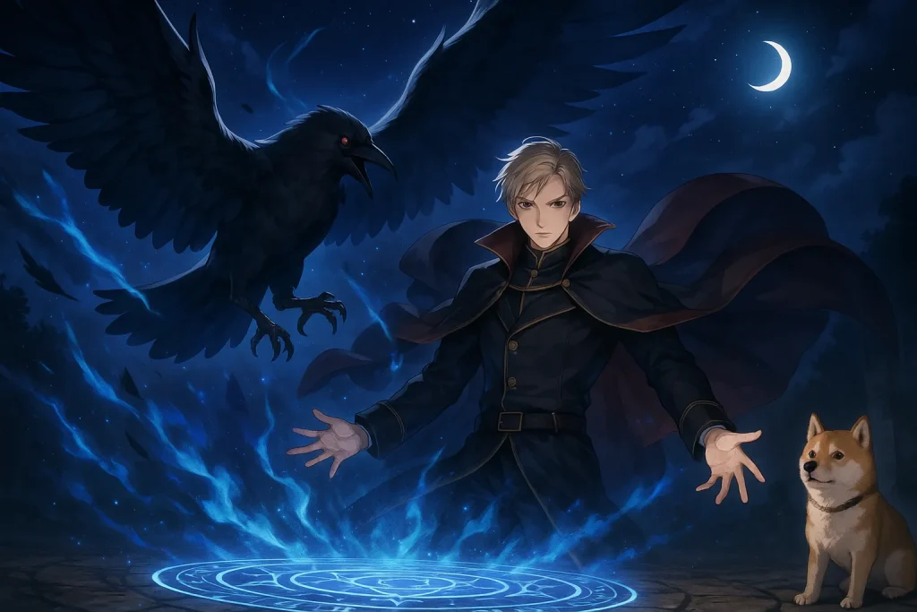 ChatGPT-Image-2025年7月30日-02_46_40-1024x683 悪魔カイム(Caim)とは?|知恵を授ける黒鳥の貴族【ソロモン72柱】」WITH柴犬